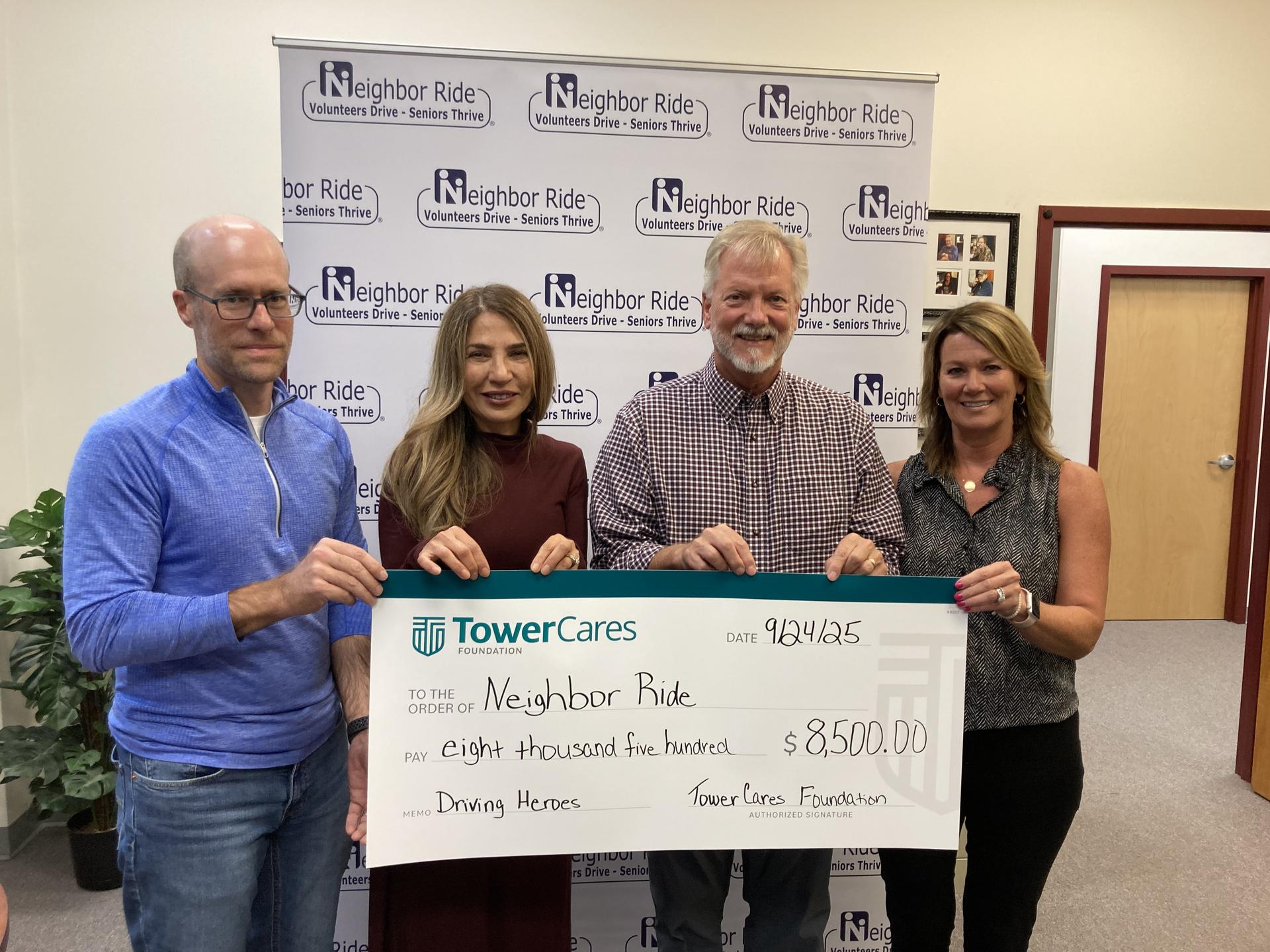 Recently, the Foundation passed the milestone of providing over $4 million in grants to the community. To celebrate, TFCU employees voted for the favorite organizations that TowerCares supports, and Neighbor Ride was one of the winners!